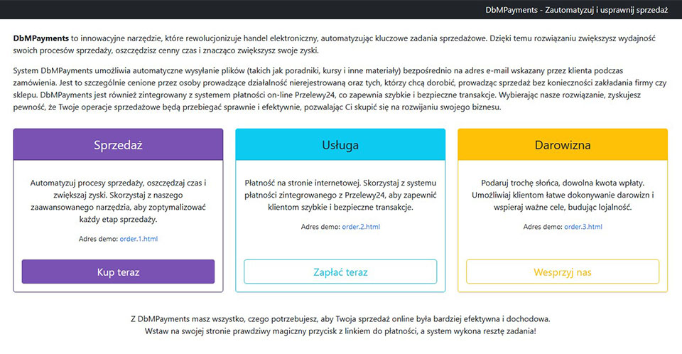DbM PaymentS - System obsługi zamówień, płatności i automatycznej sprzedaży plików cyfrowych